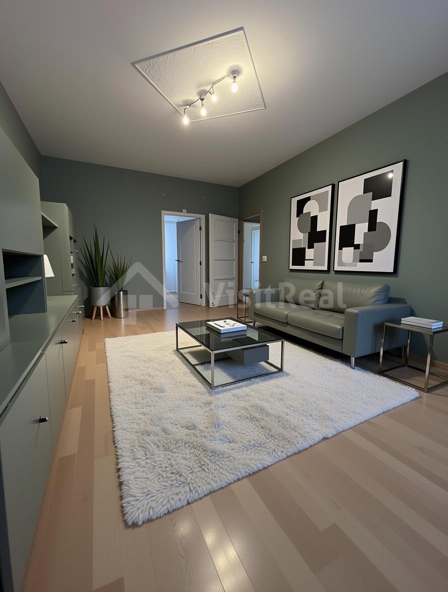 Obývacia izba je priechodná do spálne, kuchyňa je samostatná so vstupom do špajze. Byt nemá balkón, no veľká izba ponúka možnosť vytvorenia vnútornej loggie.