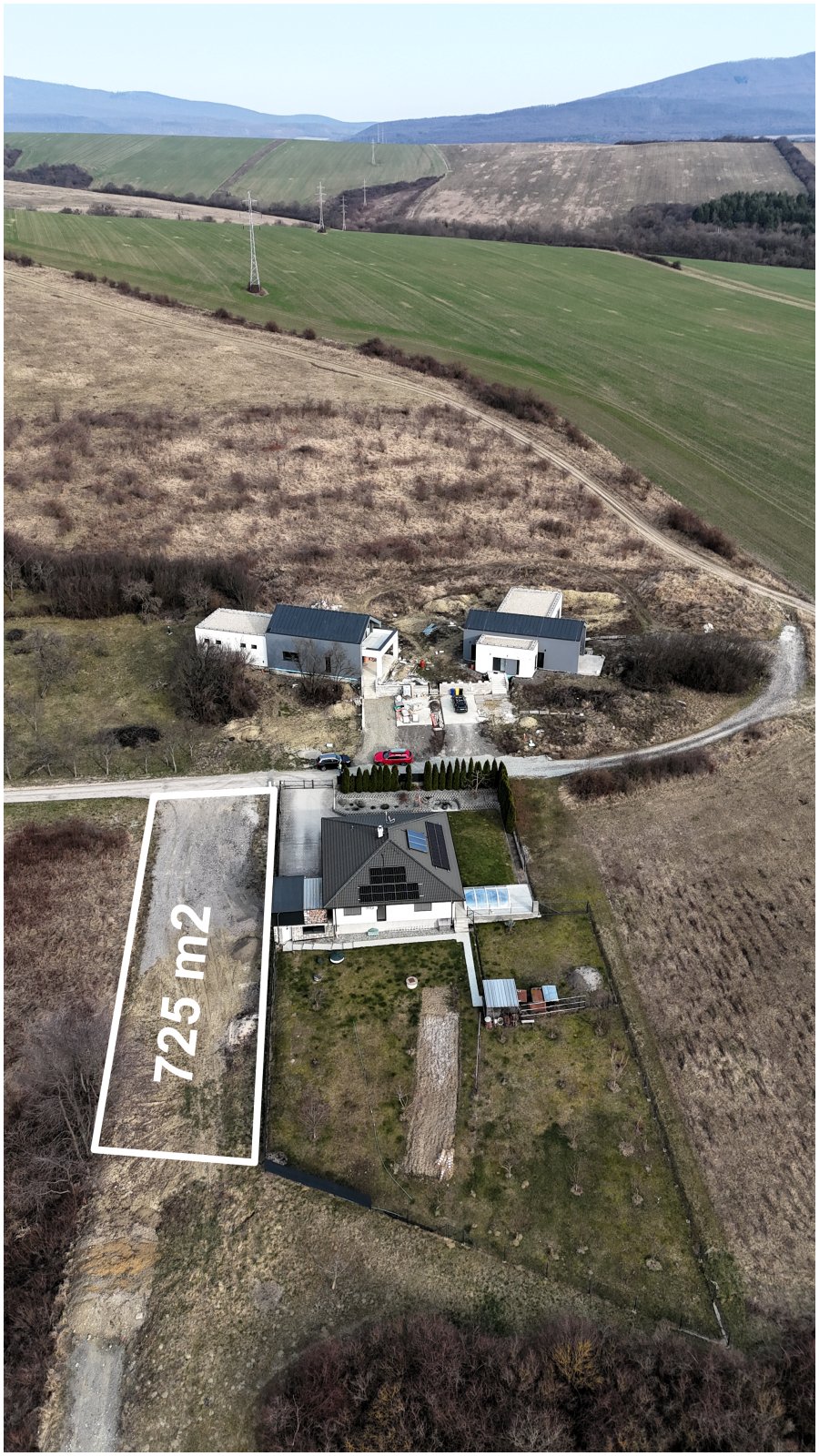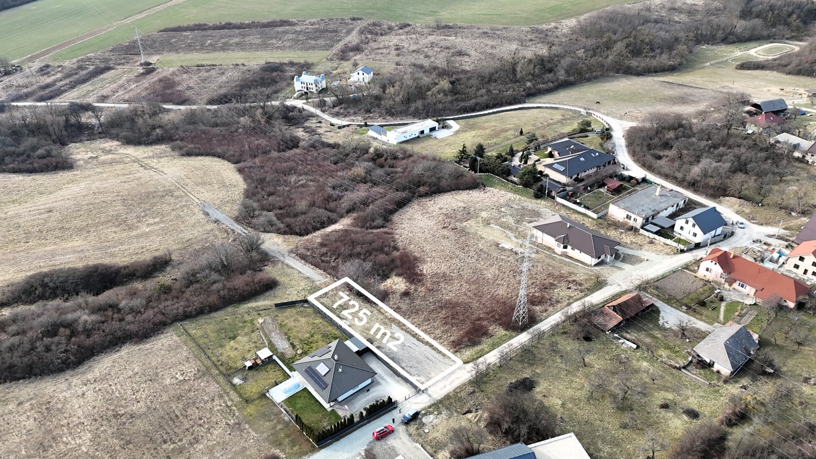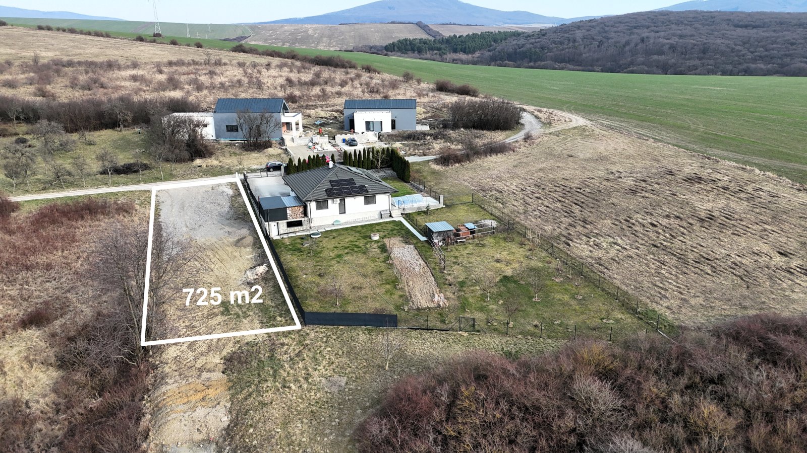 Pozemok sa nachádza na konci obce, čo zaručuje minimum ruchu, maximálne súkromie a ničím