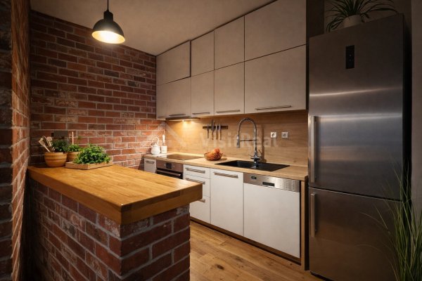 Tento byt predstavuje výnimočnú ponuku pre náročných – je totiž zariadený s dôrazom na špičkovú kvalitu a nadčasový dizajn. Už pri vstupe vás očaria drevené podlahy, ktoré dodávajú interiéru prirodzenú eleganciu. Kuchynská linka z masívu krásne dopĺňa luxusné vstavané prvky vyrobené z prvotriednych materiálov.